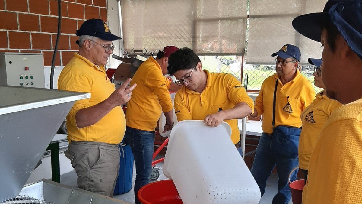 Chinchinu00e1, 16 de marzo de 2024.- El Coordinador de Poscosecha del Comitu00e9 de Cafeteros del Valle del Cauca, Juan Esteban Salcedo, participu00f3 en una capacitaciu00f3n en Cenicafu00e9 dirigida a los colaboradores encargados de este tema en el pau00eds.