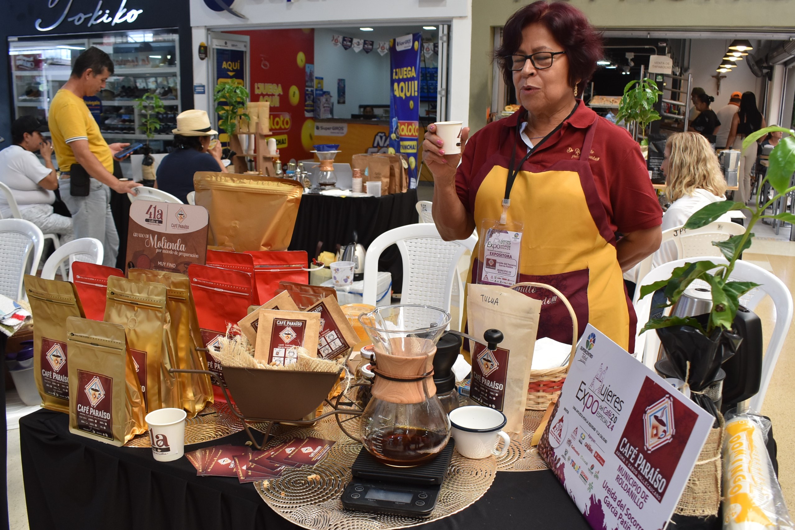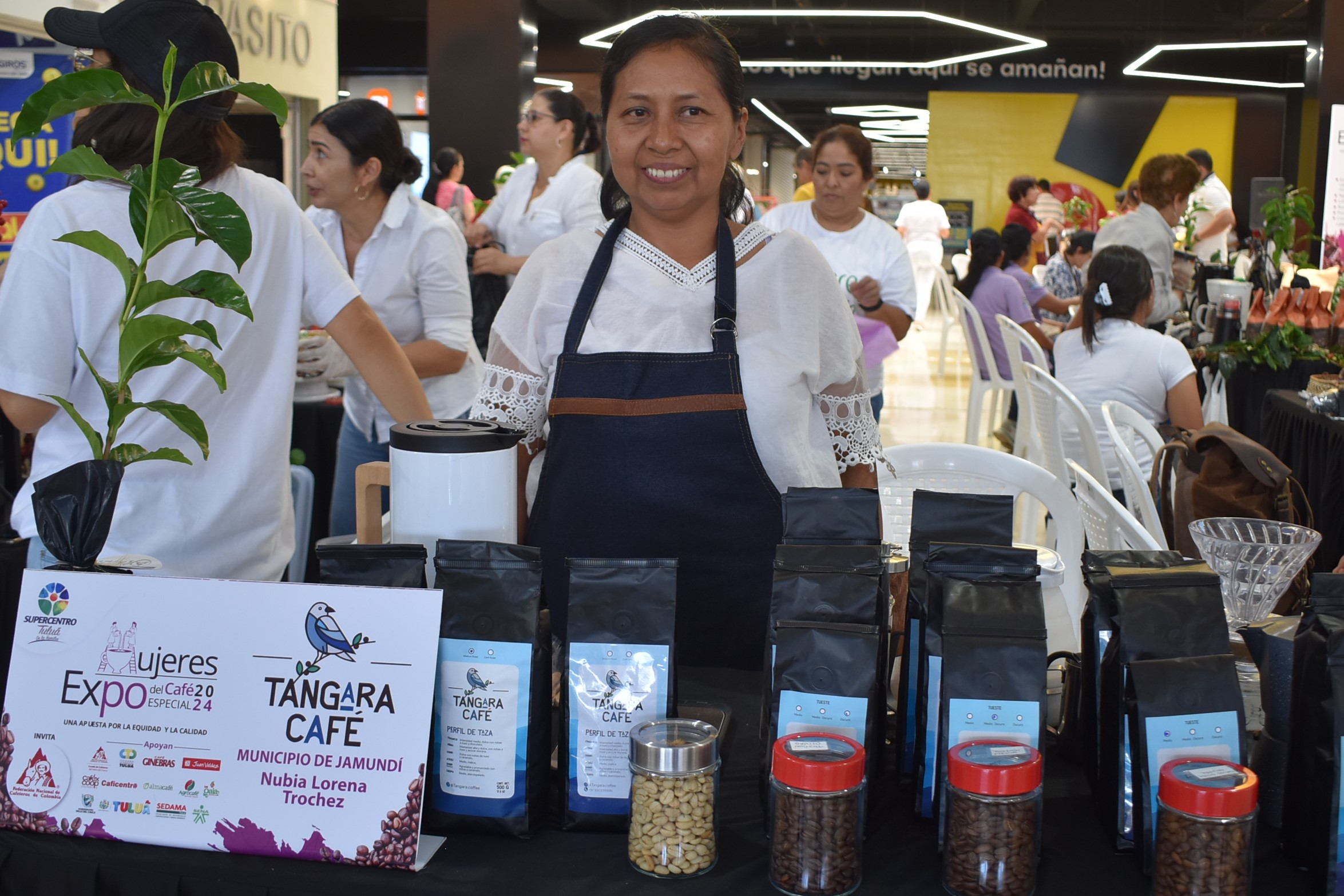 Cali, 21 de abril de 2024.- Estuvimos en Expo Mujeres del Cafu00e9 Especial 2024, en el Su00fapercentro Tuluu00e1, evento que contu00f3 con mu00e1s de 30 expositoras, mujeres productoras del grano del Valle del Cauca, quienes cada du00eda nos hacen sentir un profundo orgullo cafetero.